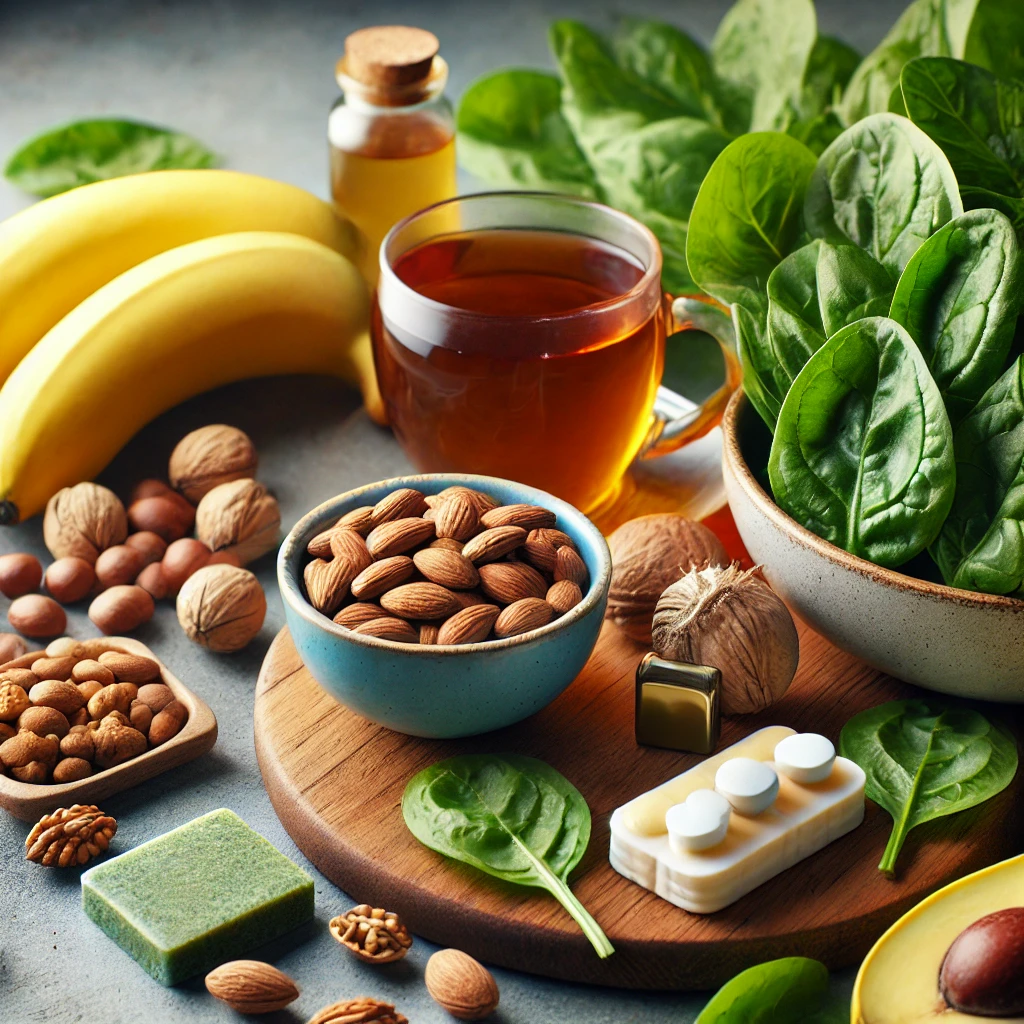 - 마그네슘이 풍부한 음식: 마그네슘은 근육의 긴장을 완화하고 통증을 줄이는 데 효과적입니다. 바나나, 아몬드, 시금치 같은 마그네슘이 풍부한 음식이 생리통에 좋습니다.